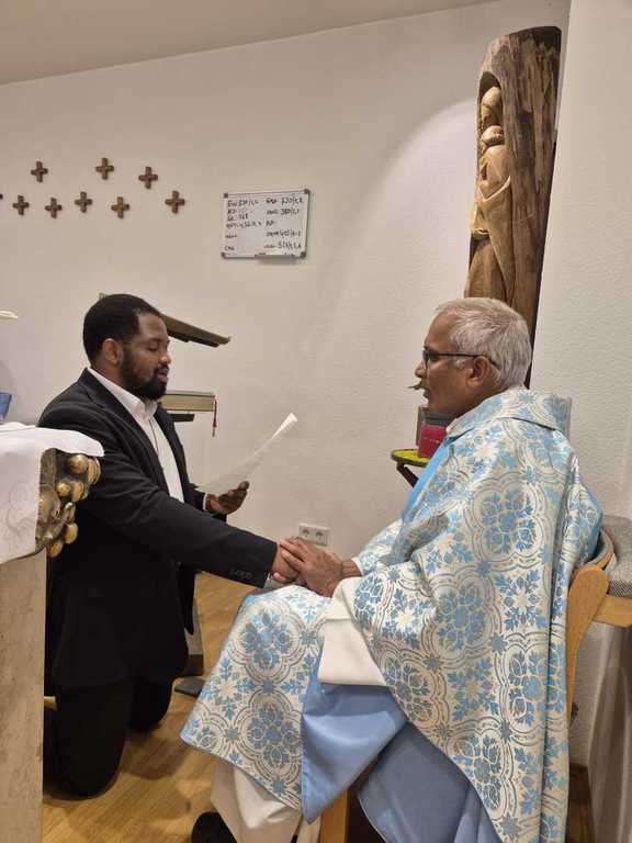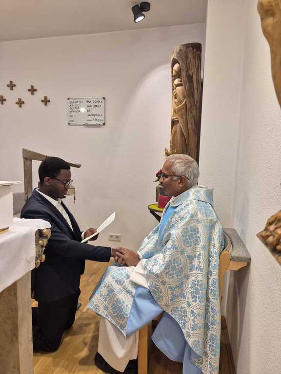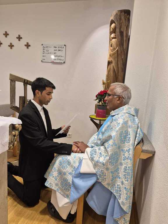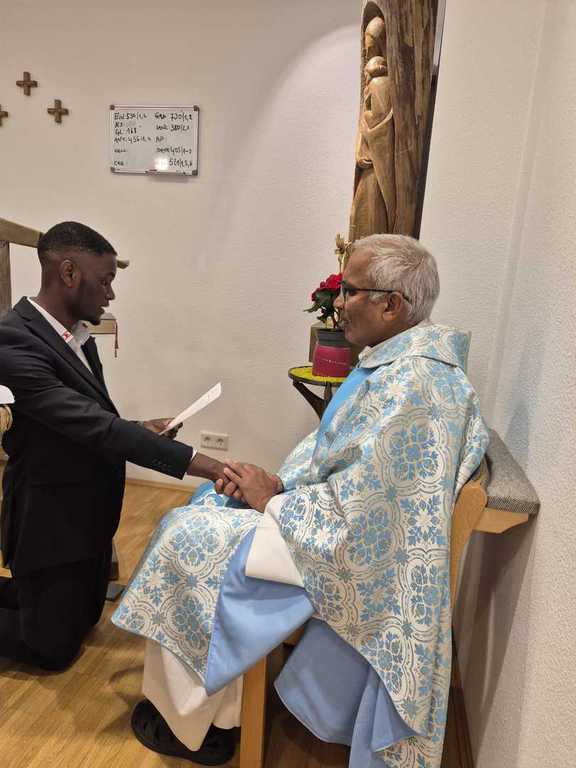 Am 8. September 2025, dem Fest Mariä Geburt, haben die Fratres Ghislain Tutonda, Gabriel Ade, Joseph Reagan Bagala und Ajo Jose Arul Mary im Claretinerseminar in Frankfurt am Main ihre Profess erneuert.