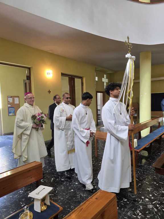 und P. Antony CMF hat auch konzelebriert. Der Weihbischof Franz Scharl hat auf deutsch gepredigt und P.Antony CMF hat auf Singhalesisch gepredigt.